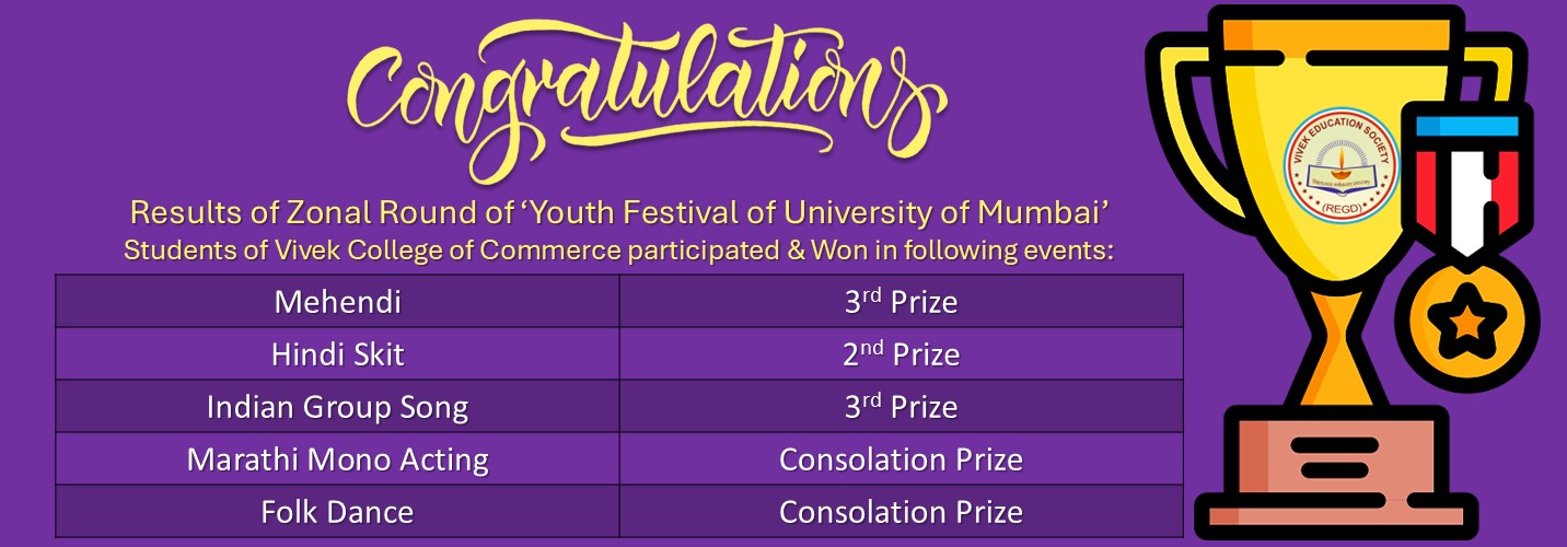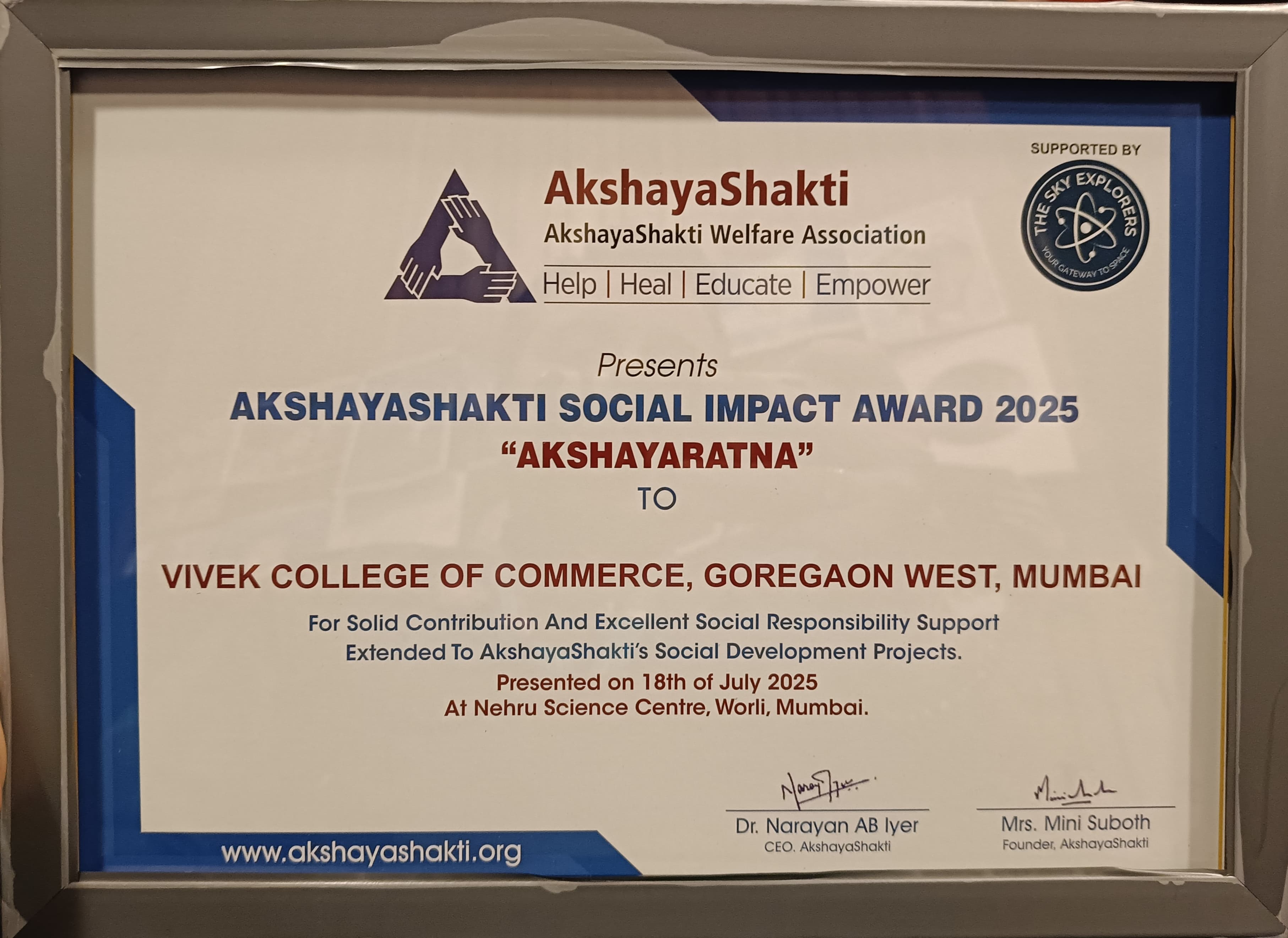 Vivek Education Society, a Charitable Institution set up in the year 1961, had established Vivek Vidyalaya in 1962 and followed it up by starting Junior College in the streams of Arts, Science & Commerce in 1976. Vivek College of Commerce was started in the year 1986. It is recognized as a vibrant institution working relentlessly for the cause of education..